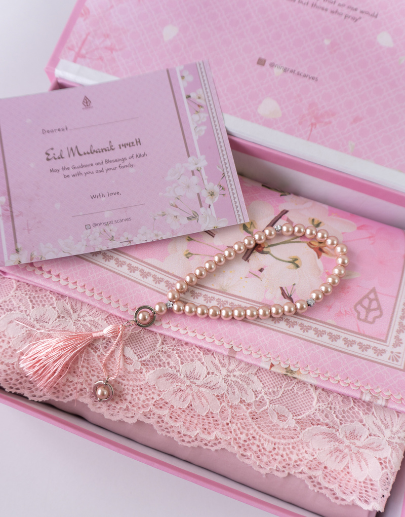 For Hampers Idul Fitri contains a beautiful mukena set.